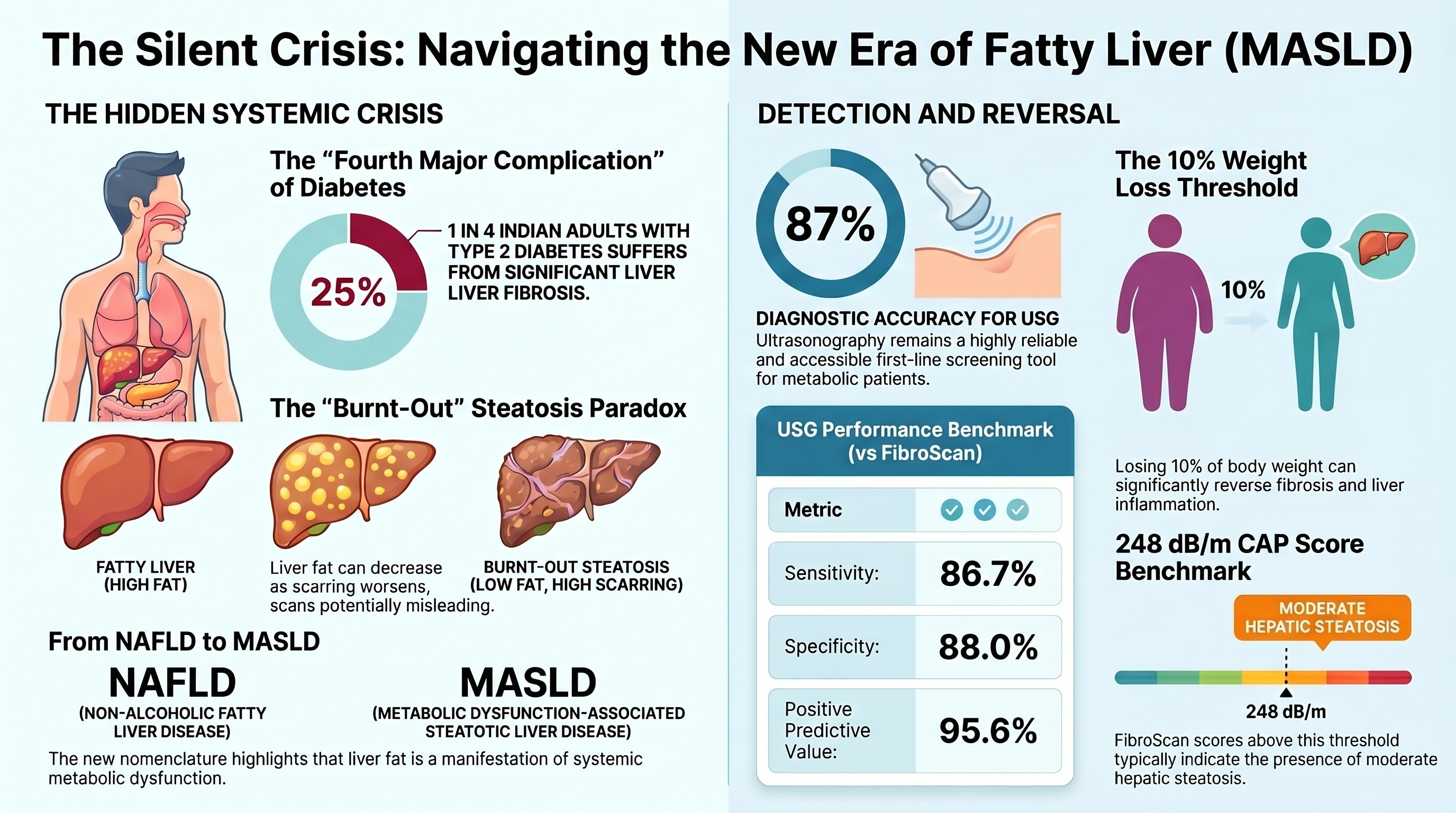 ✅ *Liver Transplantation & Advanced Hepatology:* - Extensive experience in *pre- and post-liver transplant care*, managing complex cases including acute liver failure, decompensated cirrhosis, and transplant rejection. - Pioneer in *personalized integrative approaches* to optimize liver transplant outcomes. ✅ *Metabolic & Fatty Liver Diseases (NAFLD/MAFLD):* - Leading authority on the *non-invasive assessment and management of fatty liver disease*, obesity-related liver dysfunction, and diabetes-associated liver disorders. - Expert in *FibroScan-guided* treatment algorithms for *NAFLD, NASH, and fibrosis regression*. ✅ *Hepatic Encephalopathy & Cognitive Impairment in Liver Disease:* - Innovator in *Critical Flicker Frequency (CFF) testing* for early detection of *Minimal Hepatic Encephalopathy (MHE)*. - Researching hepatic-brain axis dysfunction to enhance neurocognitive recovery in cirrhotic patients. ✅ *Integrative & Regenerative Liver Medicine:* - Specialized in *nutritional and lifestyle-based interventions* to prevent and reverse liver disease progression. - Investigating *liver regeneration strategies*, including hepatocyte growth modulation, gut microbiota modulation, and alternative therapies. ✅ *Public Health & Liver Disease Screening Initiatives:* - *Advocate for liver health awareness and policy changes* to reduce the burden of cirrhosis and liver cancer in India. - Leading initiatives to *screen truck drivers for liver disease & hepatic encephalopathy* to improve road safety. - Active in designing *community-based liver health programs* emphasizing early detection and preventive strategies.